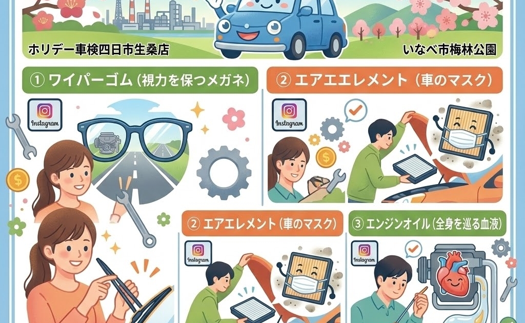実は、車検の前に「ご自身でちょっと確認しておく」だけで、予期せぬ出費を防ぎ、納得して車検を受けられるポイントがあるんです。今回は、今すぐお家でチェックできる「3つの消耗品」をご紹介します!当店のInstagram動画と一緒に、ぜひ確認してみてくださいね。